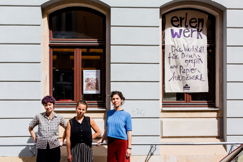 Zusammen mit Ana Pireva und Käthe Weinmann haben wir letztes Jahr das Erlenwerk gegründet, die neue Werkstatt für Druckgrafik und Papierhandwerk in Dresden! Schau doch mal vorbei!